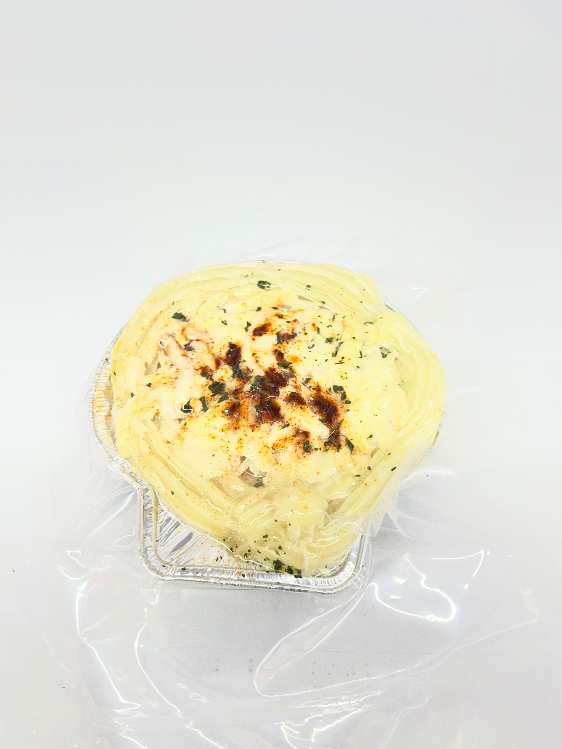 béchamel (farine de riz , huile de canola, lait, oignon, cèleri, vin), crevettes, pétoncles, pomme de terre (pomme de terre, sel, beurre (crème, sel) contient 2% ou moins de babeurre, huile de canola, crème, mono et diglycérides, maltodextrine, lait écrémé, arome naturel, lait, lécithine de tournesol, bisulfite de sodium, bht, pyrophosphate d'acide de sodium, acide citrique), fromage mozzarella (lait pasteurisé, substance laitières modifiées, sel, culture bactérienne, chlorure de calcium, enzymes microbien), sel, poivre, base de poulet sans gluten